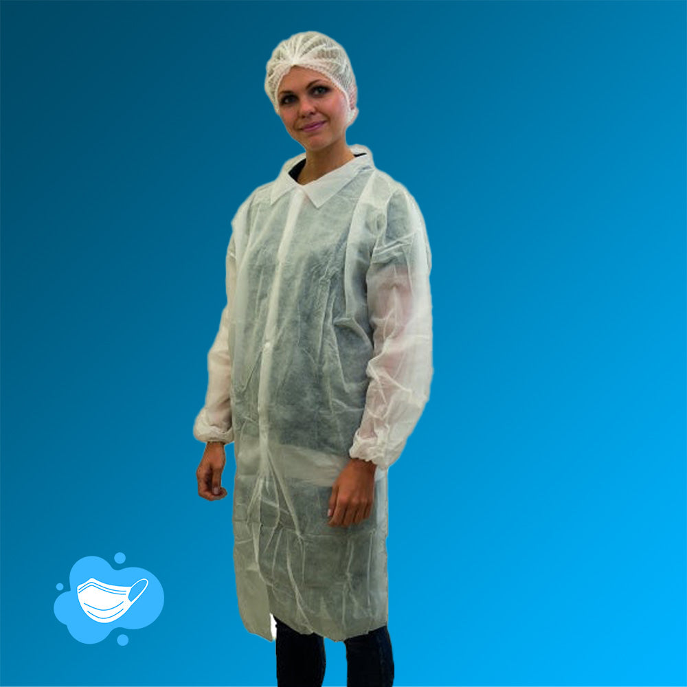 Aus leichtem PP-Gewebe gefertigt, bietet der Besuchermantel eine einfache Lösung für schnellen Schutz. Der PP Besuchermantel punktet mit geringem Gewicht, einer hervorragenden Atmungsaktivität und einem entsprechend hohem Tragekomfort. Mit dem PP-Besuchermantel schützen Sie sich selber vor Verunreinigungen, sowie auch Produktionen vor Verunreinigungen. Schließen kann man den Mantel mit 4 Druckknöpfen schließen. Weiterhin besitzt der Mantel einen klassischen Hemdkragen.