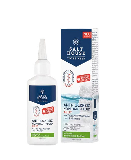 Erleben Sie sofortige Linderung und spürbare Pflege für Ihre Kopfhaut mit dem SALTHOUSE Totes Meer Therapie Anti-Juckreiz Kopfhaut-Fluid Akut.