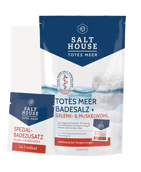 Entdecken Sie das SALTHOUSE Original Totes Meer Badesalz Gelenk- & Muskelwohl - eine wohltuende Pflege für Ihre Muskeln und Gelenke, die Ihnen nach körperlicher Anstrengung, Sport oder einem anstrengenden Tag Entspannung bietet.